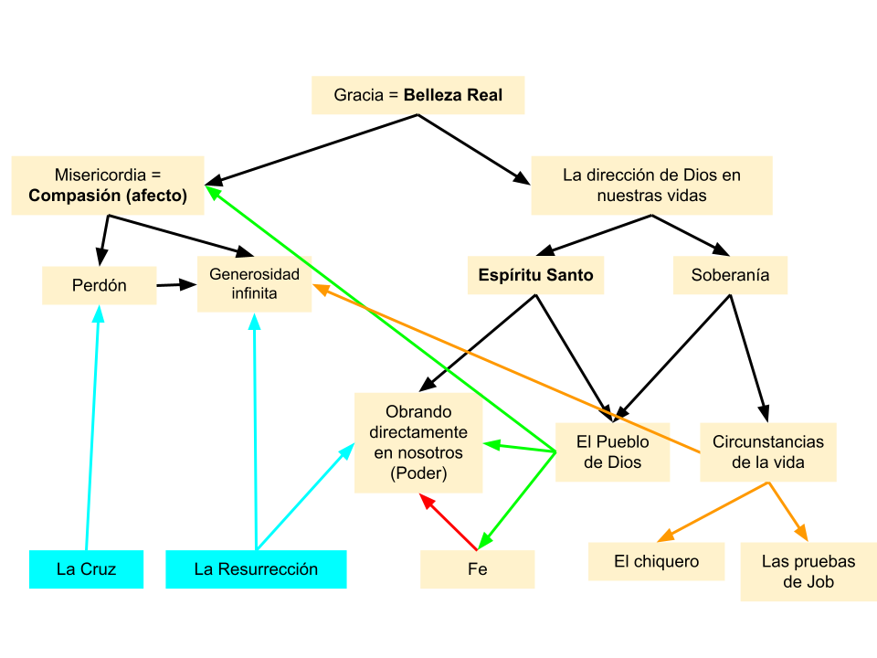 Sin embargo, la razón por la que la única flecha roja sale de la “fe” es que esa es la única parte que nosotros mismos ponemos para recibir la gracia: creer y actuar. “Por gracia ustedes han sido salvados por medio de la fe”; así fuimos transformados por primera vez, pero también esa sigue siendo la única manera en que seguimos siendo transformados continuamente.